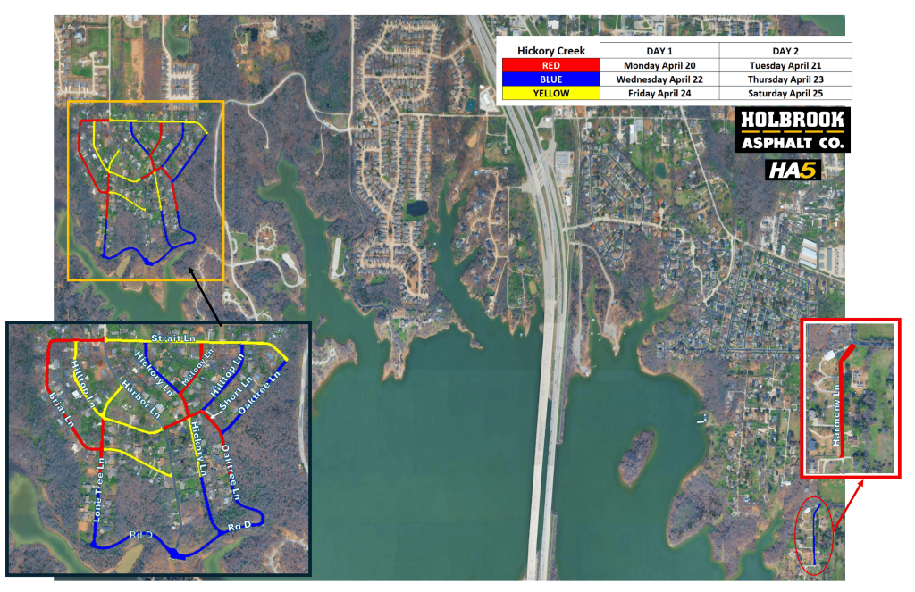 Holbrook Asphalt will be performing street maintenance in your area on behalf of the City of Hickory Creek. The product being applied is a High Density Mineral Bond called HA5. The treatment will help significantly extend the life of the streets. The benefits of properly maintained streets include higher property values, a smoother/safer ride, and reduced costs to the community by prolonging the need for replacement.