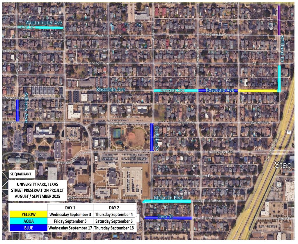 The 3400 block of UNIVERSITY BLVD has been removed from the project for this year. Your street will remain open.